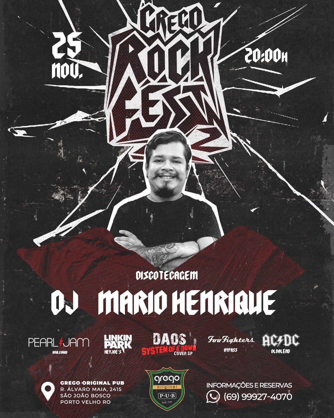 Grego Original preparou uma super programação: 5 bandas e 5 especiais de todos os estilos de rock, do New metal ao clássico. O line UP contará com DJ Mario Henrique, Banda Old Blend com especial Ac Dc, banda Hey Joe's com especial Linkin Park e banda DAOS, cover System of a down vindo diretamente de Sp. Tudo isso no palco principal. Já no palco lounge, banda Boulevard com especial Pearl Jam e banda Bypass com especial Foo Fighters.