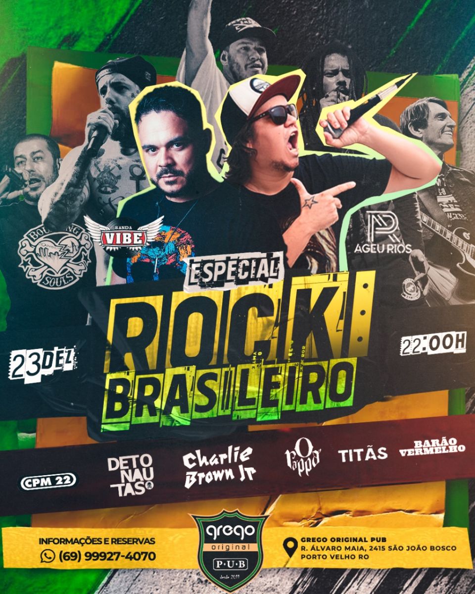 Para quem curte muito rock nacional, sábado a noite é a programação perfeita. A casa terá Ageu Rios e banda, juntamente com banda Vibe, na interpretação dos maiores e melhores do rock nacional.