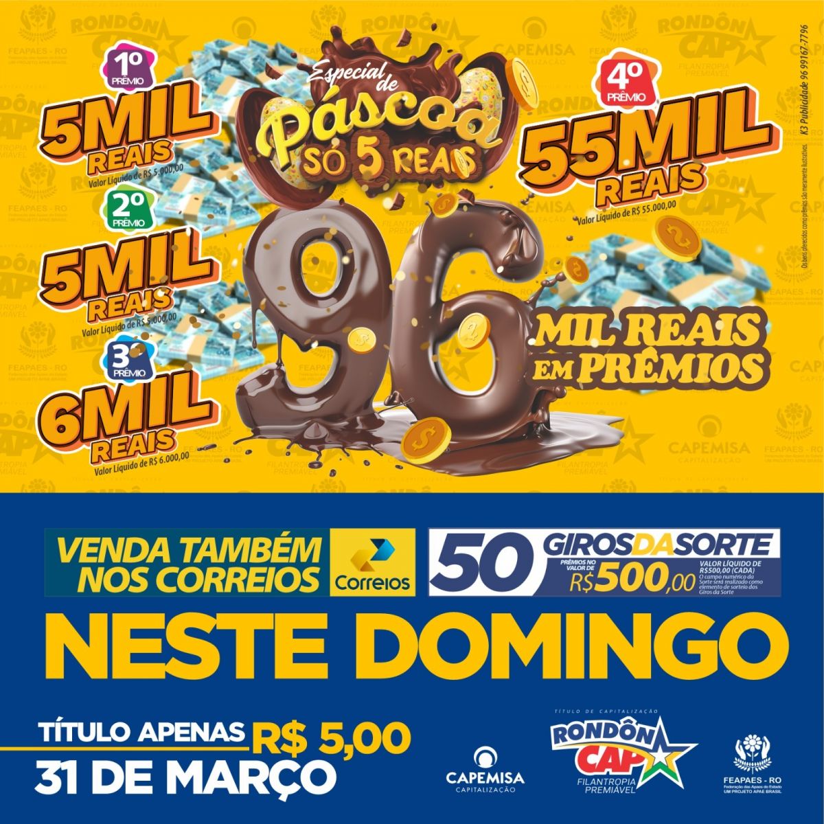 O RondonCAP Especial de Páscoa está doce como chocolate; serão mais de 50 ganhadores e o Titulo só 5 reais.