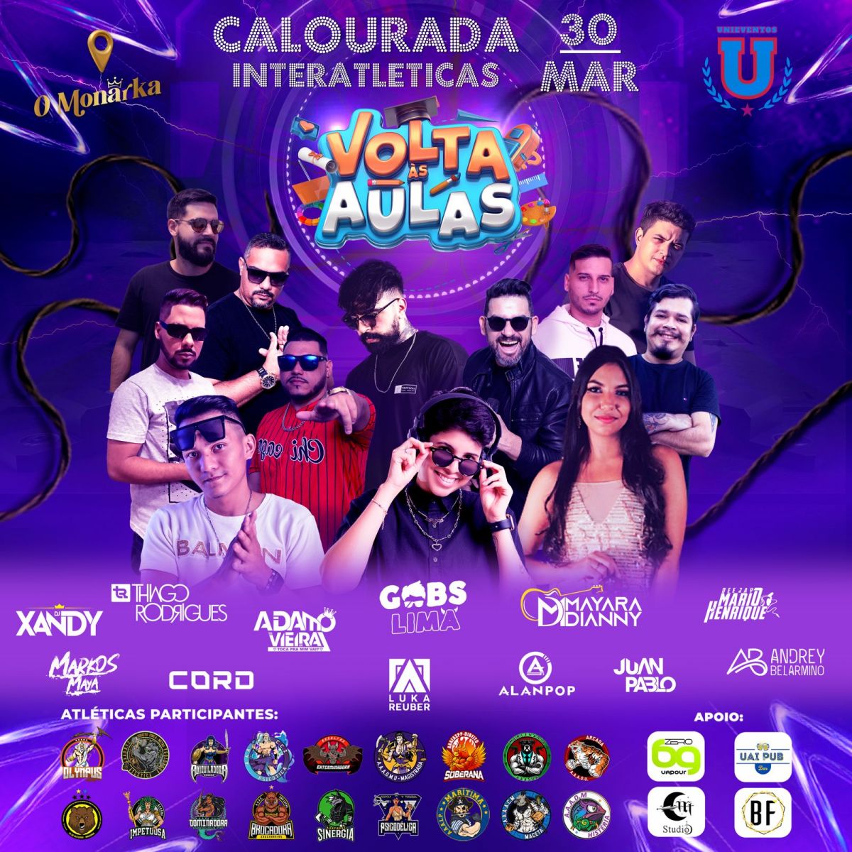 Com participação de 18 Atléticas das faculdades o evento tem o apoio, BF Gestão, 069 Vapour, Uai Pub Bar e o Studio Dark Moon.