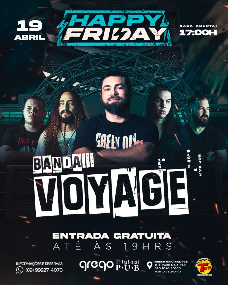 Sexta feira, aberta a partir de 17h com muito happy hour! Chopp a partir de $6,99 e petiscos com 50% off. De atrações musicais, banda Voyage e banda Old blend com mini especial Scorpions.