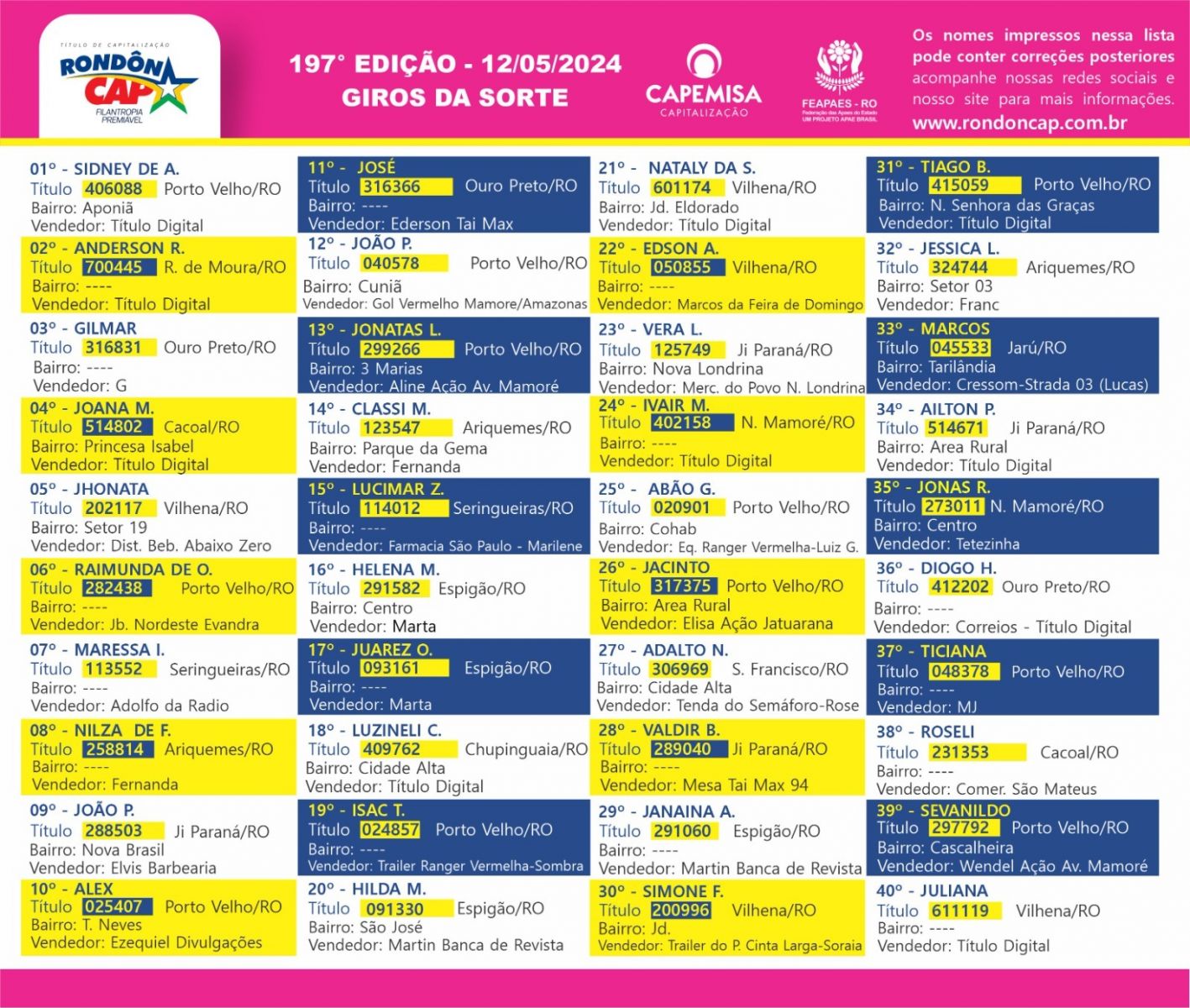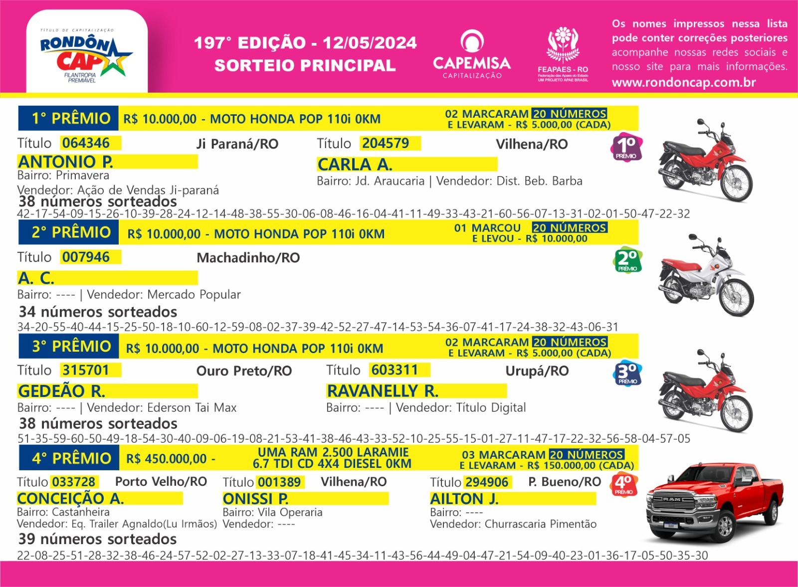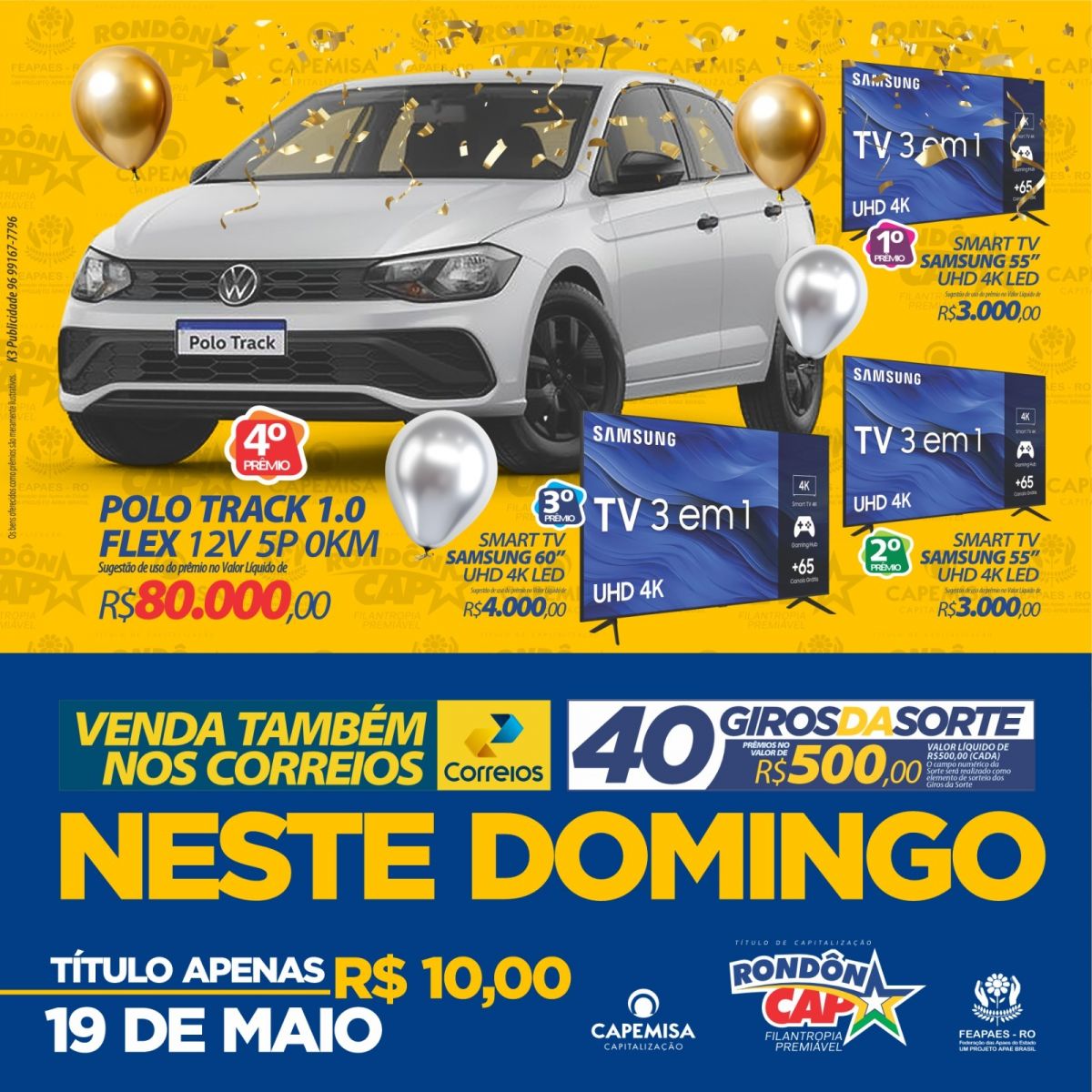 É chave na mão ou dinheiro na conta. E mais; três Tvs 4k e 40 giros de 500 reais. RondonCAP só 10 reais, ajude as APAES e participe!