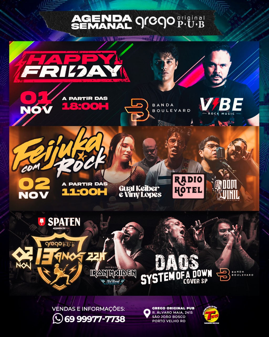 Quem gosta de comida boa e música de qualidade impecável, o lugar para passar o sábadao é a feijuka com rock do Grego Original! 3 bandas na pegada dançante e retro se apresentam, enquanto você degusta uma autentica feijuka com os melhores ingredientes disponíveis no mercado.
