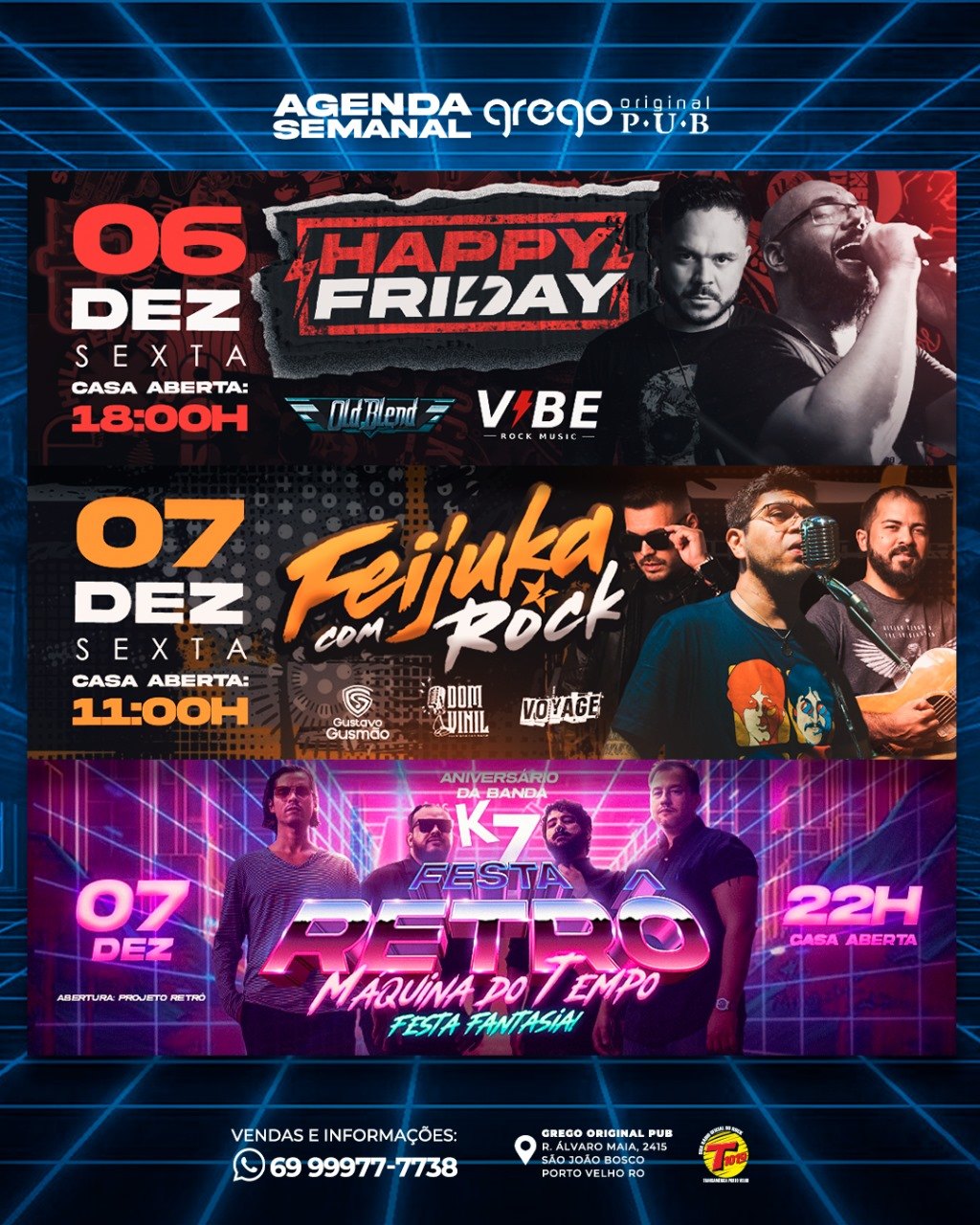 Grego original pub e banda k7 apresentam Máquina do tempo: uma festa Retrô a fantasia para comemorar 09 anos de banda k7. Dia 07/12 a partir de 22h o palco do grego original vai voltar no tempo.