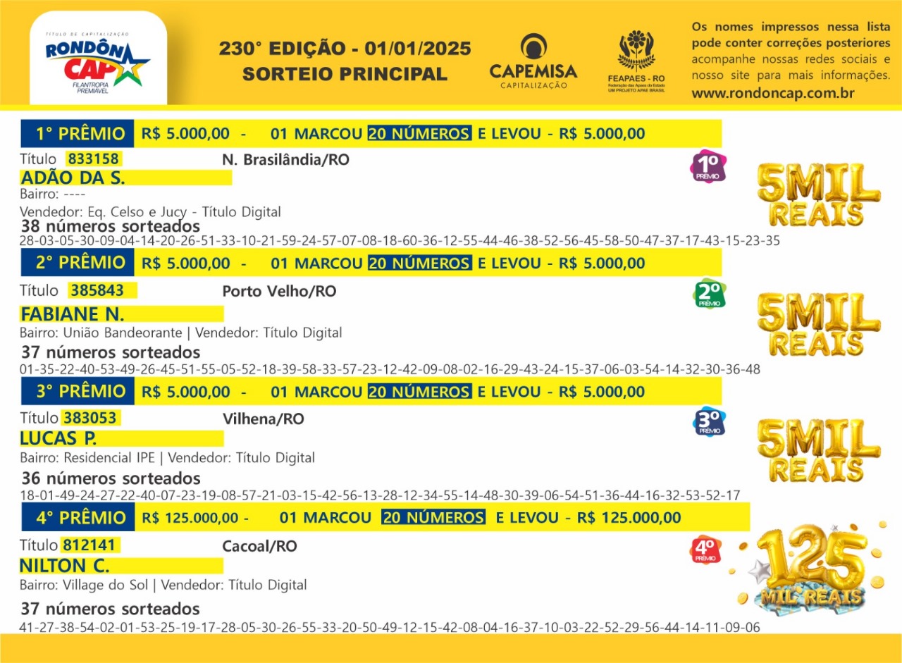 Compre o seu RondonCAP fisico ou digital com o vendedor de sua preferencia ou no ponto de vendas mais perto de você. Serão 90 mil reais em prêmios e o Titulo só 5 reais! Especial Black Fast RondonCAP - só 5 reais; ajude as Apaes e participe!
