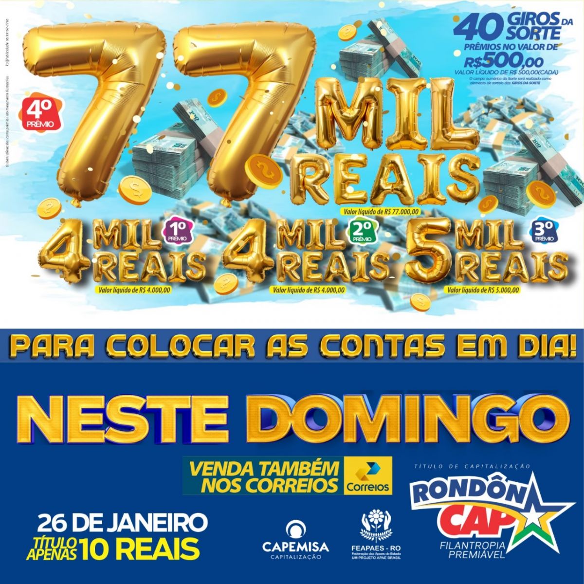 Compre o seu RondonCAP Fisico ou Digital por apenas 10 reais, ajude as APAES e deixe a sorte ajudar você.