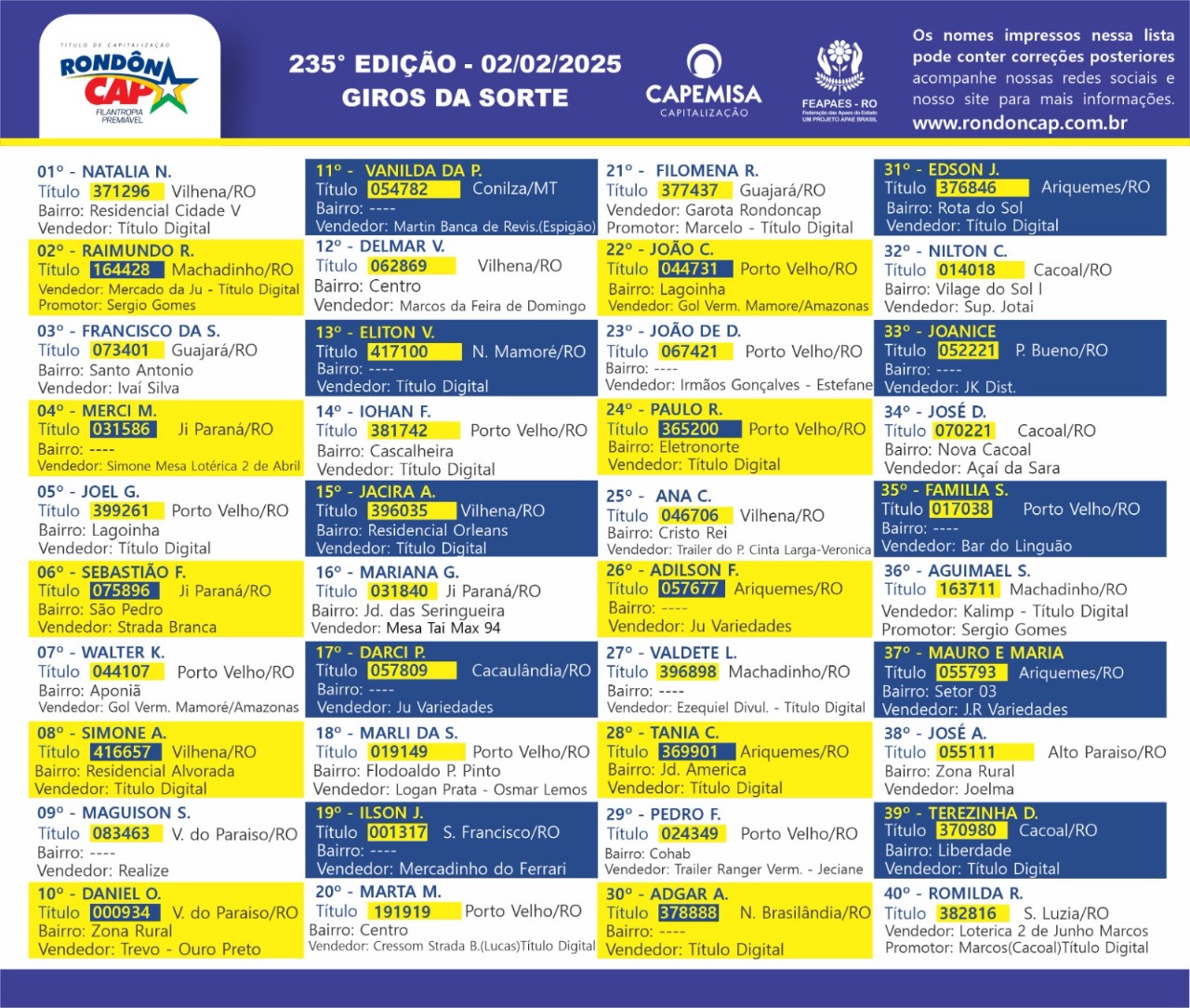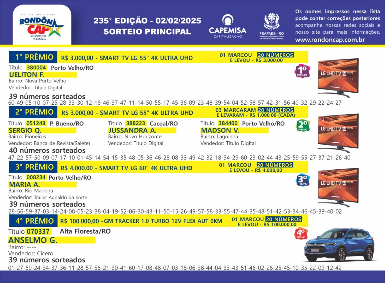 O RondonCAP Especial de fevereiro está sensacional, serão 5 prêmios principais e com o 5º Prêmio você pode trabalhar, passear e ainda ir pescar.
