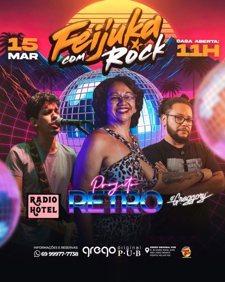 Para você que curte uma balada no fim de tarde, a fejuka com rock é uma excelente opção para o seu sábado. Casa aberta a partir das 11 horas, com delicioso almoço e logo após, a balada mais rock and roll de Porto Velho começa. É uma programação completa, você pode inclusive curtir em família, a casa conta com espaço kids com monitor infantil sem curso adicional nenhum.