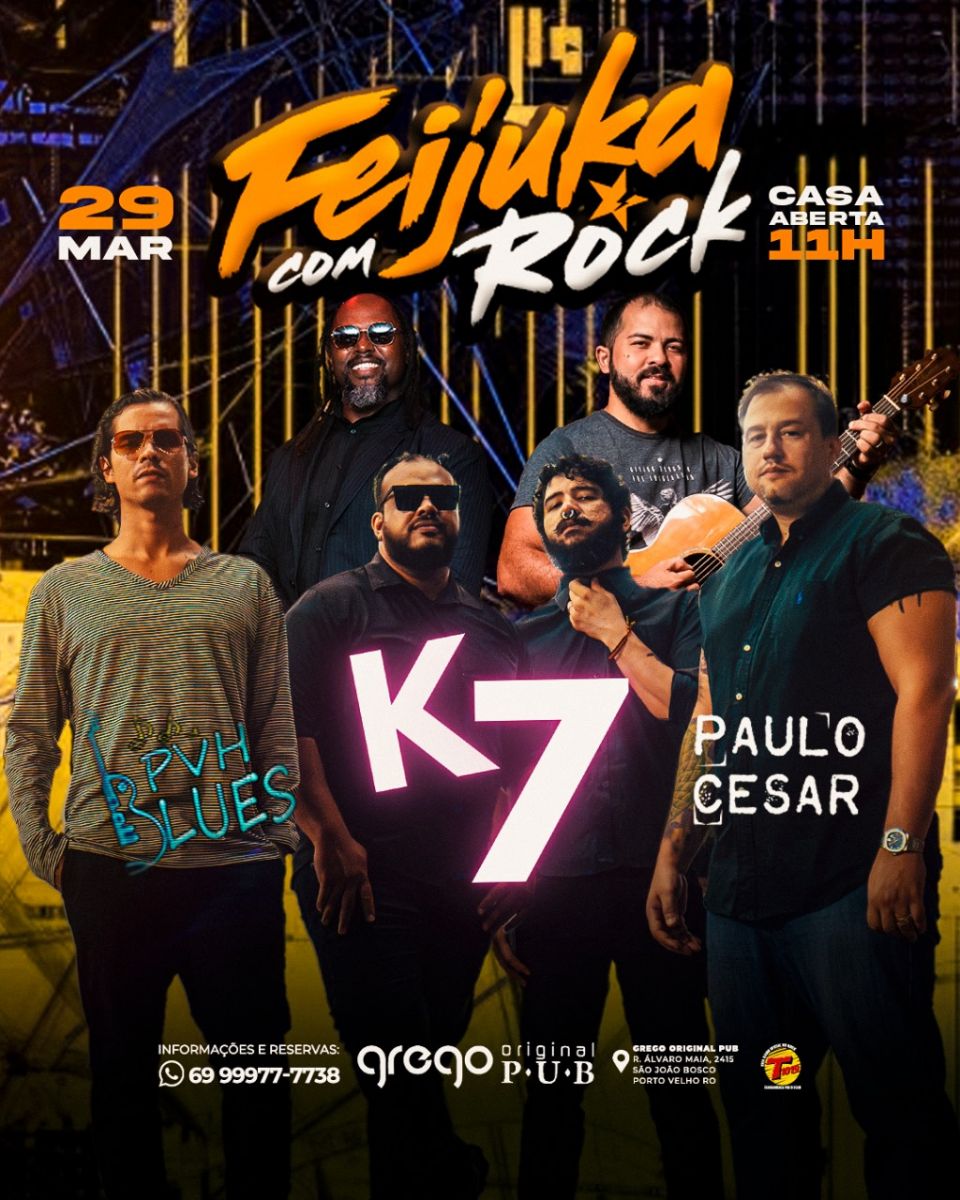 Pra quem curte a programação musical, banda Pvh Blues, banda K7 e Paulo Cesar acústico.