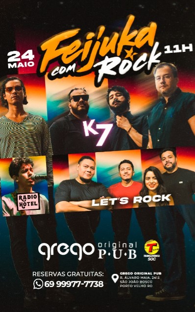 Para você que curte uma balada no fim de tarde, a fejuka com rock é uma excelente opção para o seu sábado. Casa aberta a partir das 11 horas, com delicioso almoço e logo após, a balada mais rock and roll de Porto Velho começa. É uma programação completa, você pode inclusive curtir em família, a casa conta com espaço kids com monitor infantil sem curso adicional nenhum.