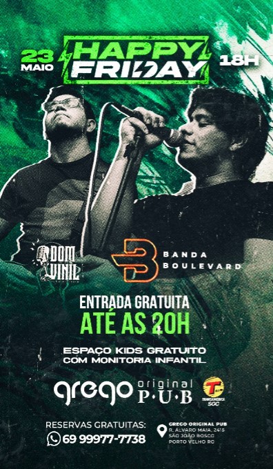 E para completar o clima, música ao vivo para embalar sua noite com o melhor do rock and roll. Essa semana teremos shows de banda Dom Vinil e banda Boulevard.