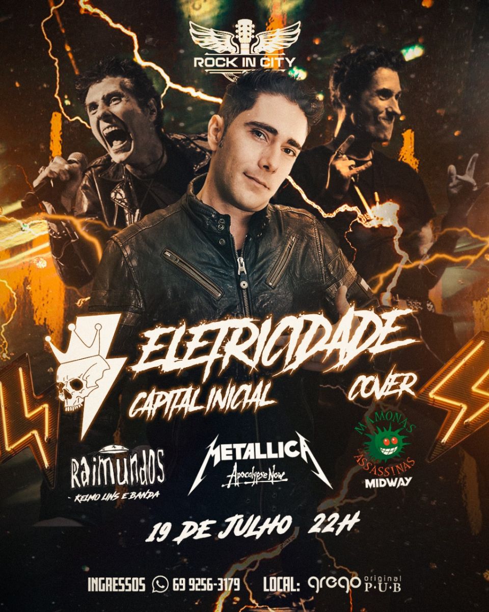 Dia 19 de julho no Grego Original, venha comemorar a semana do Rock na edição especial Rock in City, uma noite incrível com diversas atrações, Paulo Morsani direto de Minas Gerais com Cover do Capital Inicial, Banda Midway com Cover de Mamonas Assassinas, Kelmo Lins com Especial Raimundos e banda Apocalypse Now com especial Metallica.