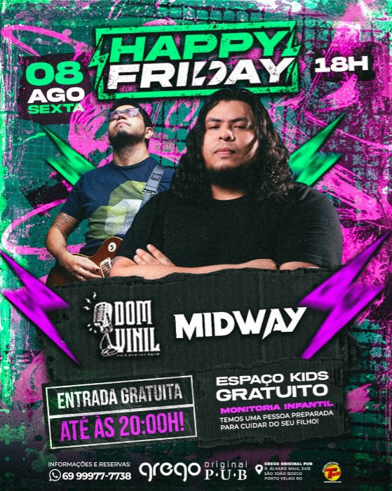 E para completar o clima, música ao vivo para embalar sua noite com o melhor do rock and roll. De apresentação musical essa semana, banda Dom Vinil e banda Midway.