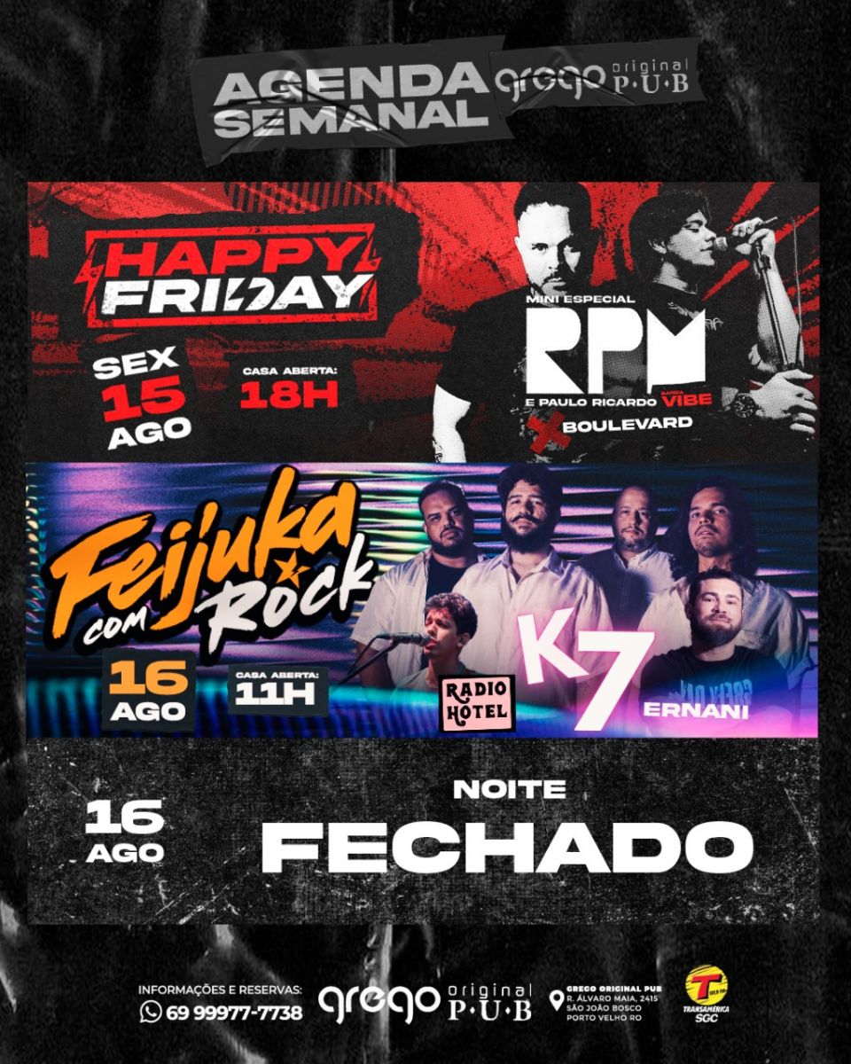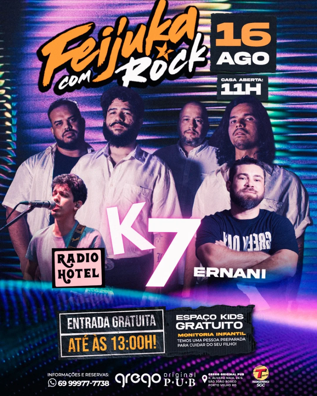 Para você que curte uma balada no fim de tarde, a fejuka com rock é uma excelente opção para o seu sábado. Casa aberta a partir das 11 horas, com delicioso almoço e logo após, a balada mais rock and roll de Porto Velho começa. É uma programação completa, você pode inclusive curtir em família, a casa conta com espaço kids com monitor infantil sem curso adicional nenhum.