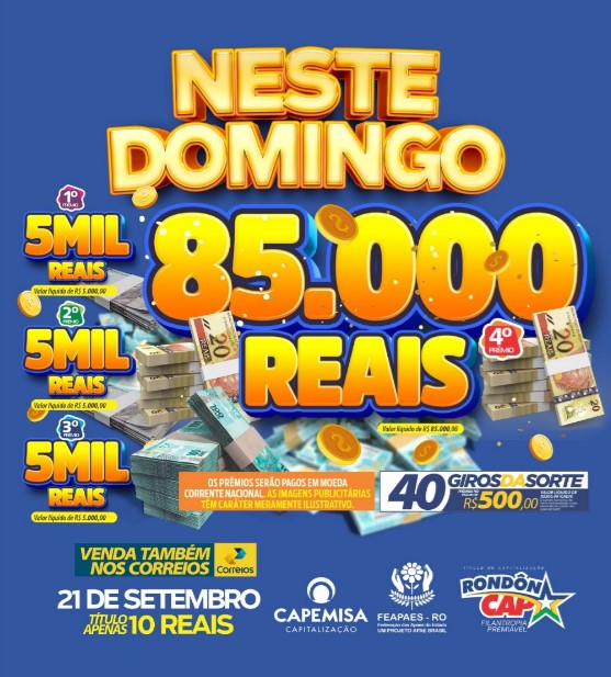 E se você está precisando de um dinheirinho a mais para dar uma ajustada nas finanças ou de uma força para realizar os seus sonhos, o RondonCAP deste domingo é pra você!