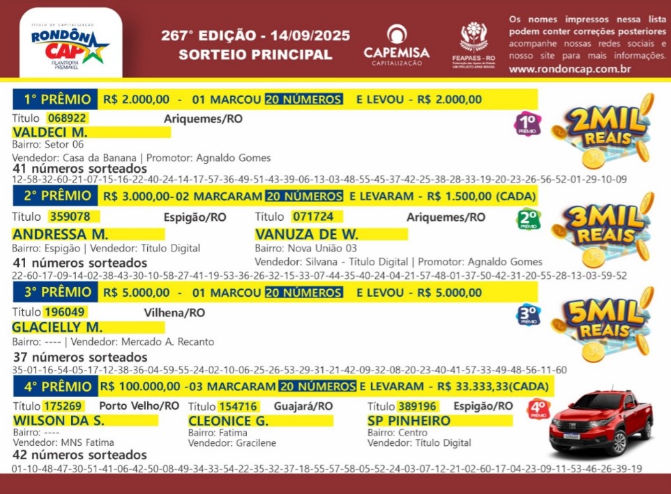 Todos os domingos tem gente comemorando, todos os domingos tem rondoniense ganhando premios do RondonCAP!