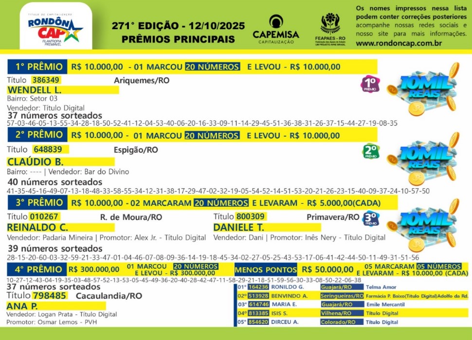 São 44 PIX no RondonCAP deste domingo e no 4° prêmio tem 90.000 reais direto na conta para realizar seus sonhos ou gastar como quiser!