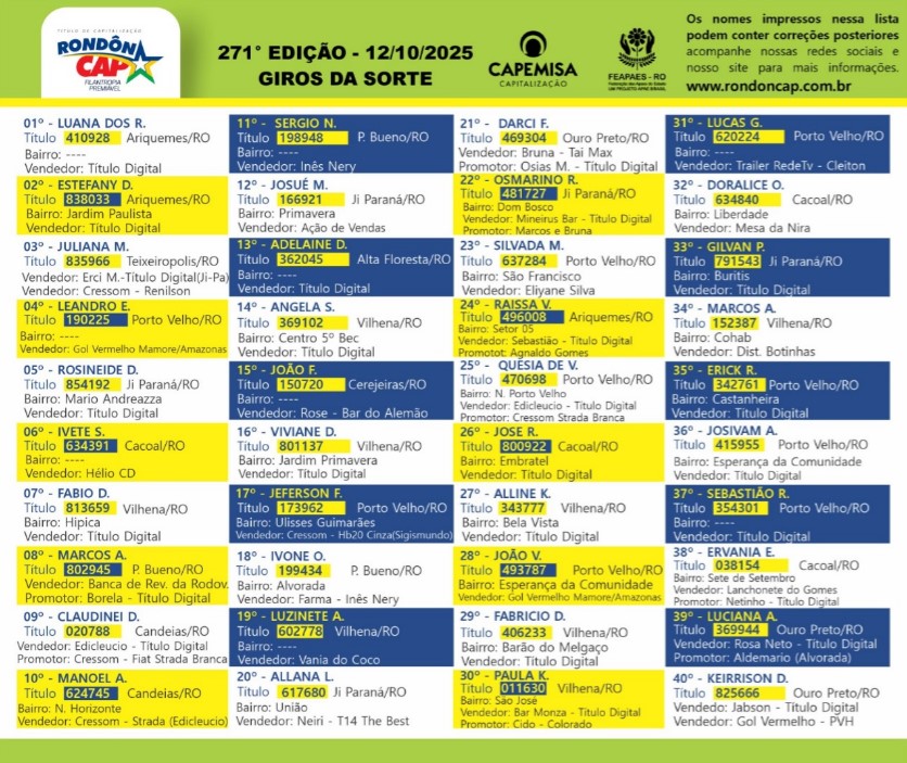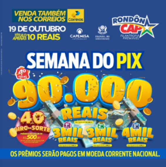 SEMANA DO PIX RondonCAP - neste domingo serão 44 PIX e um deles é de 90 mil!