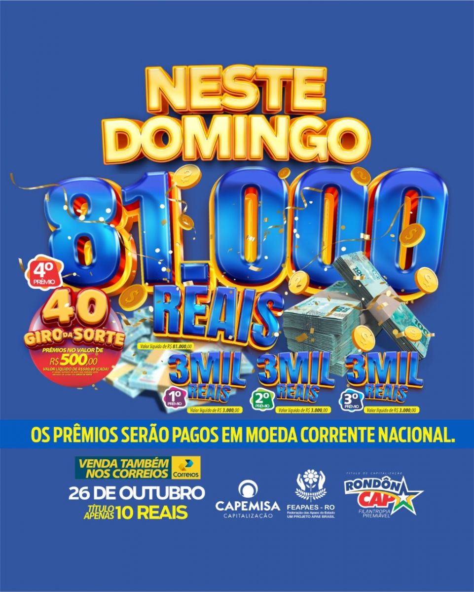 E neste domingo o RondônCAP vai sortear 110 mil reais em prêmios, é muito