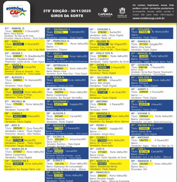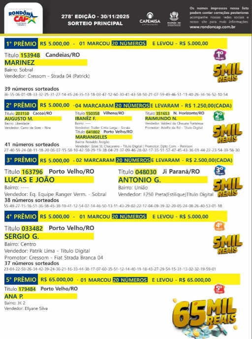ESPECIAL: RondonCAP terá no mínimo 45 ganhadores e prêmio de R$ 225 mil!