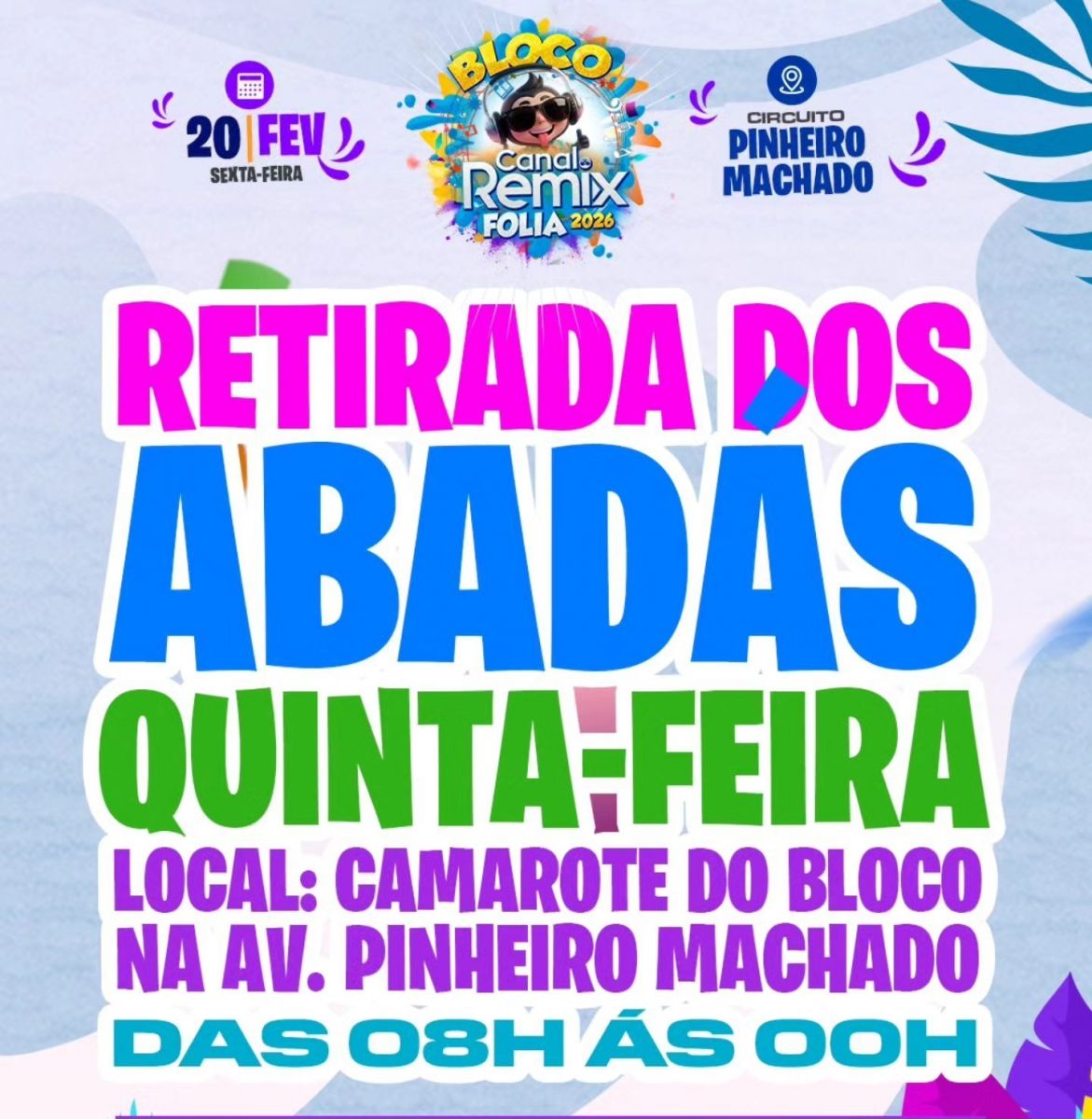 Rondoniaovivo em parceria com o Bloco Canal Remix Folia vai sortear 5 Abadás para os internautas curtirem a noite mais animada do carnaval no circuito Pinheiro Machado.