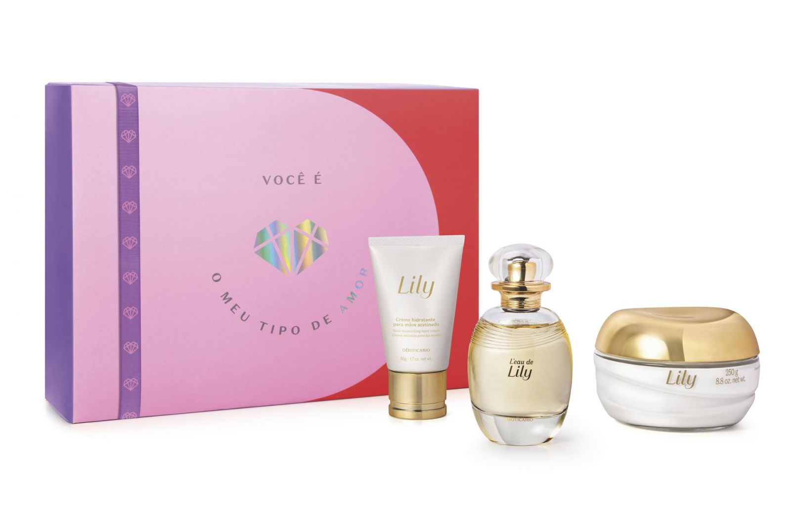 Já em perfumaria feminina, uma opção para surpreender é o Kit Lily com o Desodorante Colônia Lily, que tem fragrância sofisticada e fresca da família Floral Floral; o Creme Acetinado Lily, capaz de promover uma hidratação intensa; e o Creme para Mãos, com toque macio e aveludado.