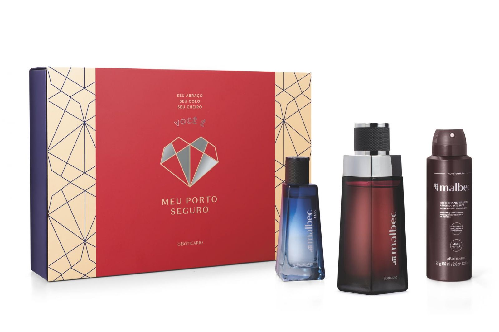 Na linha de perfumaria masculina, o Kit Malbec reúne três itens que se destacam pela fragrância potente e marcante: Malbec Desodorante Colônia, com notas frescas e amadeiradas com base de ameixa, carvalho e baunilha; Malbec Bleu Desodorante de Colônia, com fragrância fresca da família olfativa Fougére Amadeirado; além do Desodorante Antitranspirante Aerossol, que oferece até 48 horas de proteção contra os maus odores da transpiração.