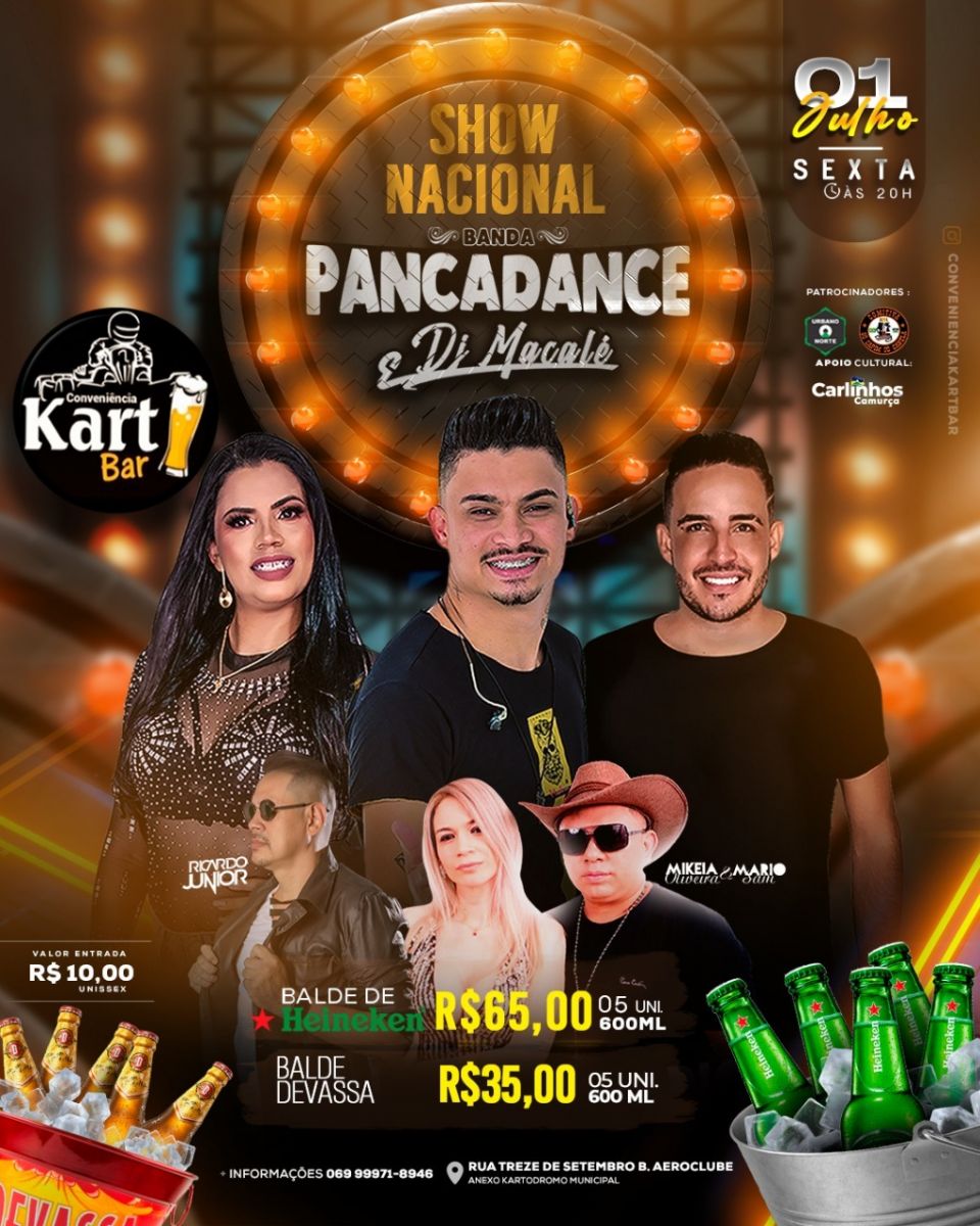 Nesta sexta feira 01 de julho às 20h, apresenta Show nacional com Banda Pancadance e DJ Macalé. Reúna a família, os amigos e venha aproveitar as promoções.