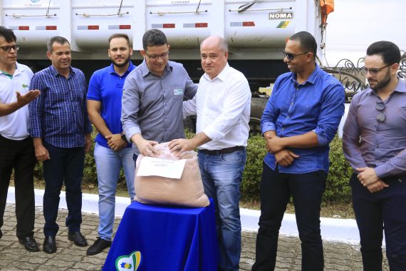 Ji-Paraná foi contemplada com 1250 toneladas de calcário, entregue pessoalmente pelo governador coronel Marcos Rocha ao prefeito Marcito Pinto