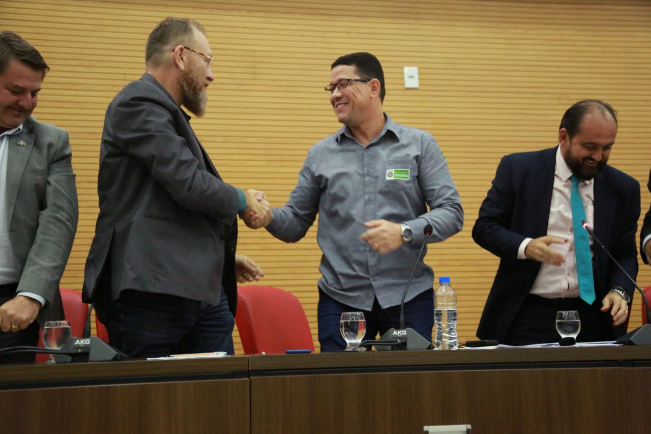 Governador Marcos Rocha e o presidente da Idaron, Júlio Peres, comemoram o status de Rondônia como livre da febre aftosa sem vacinação