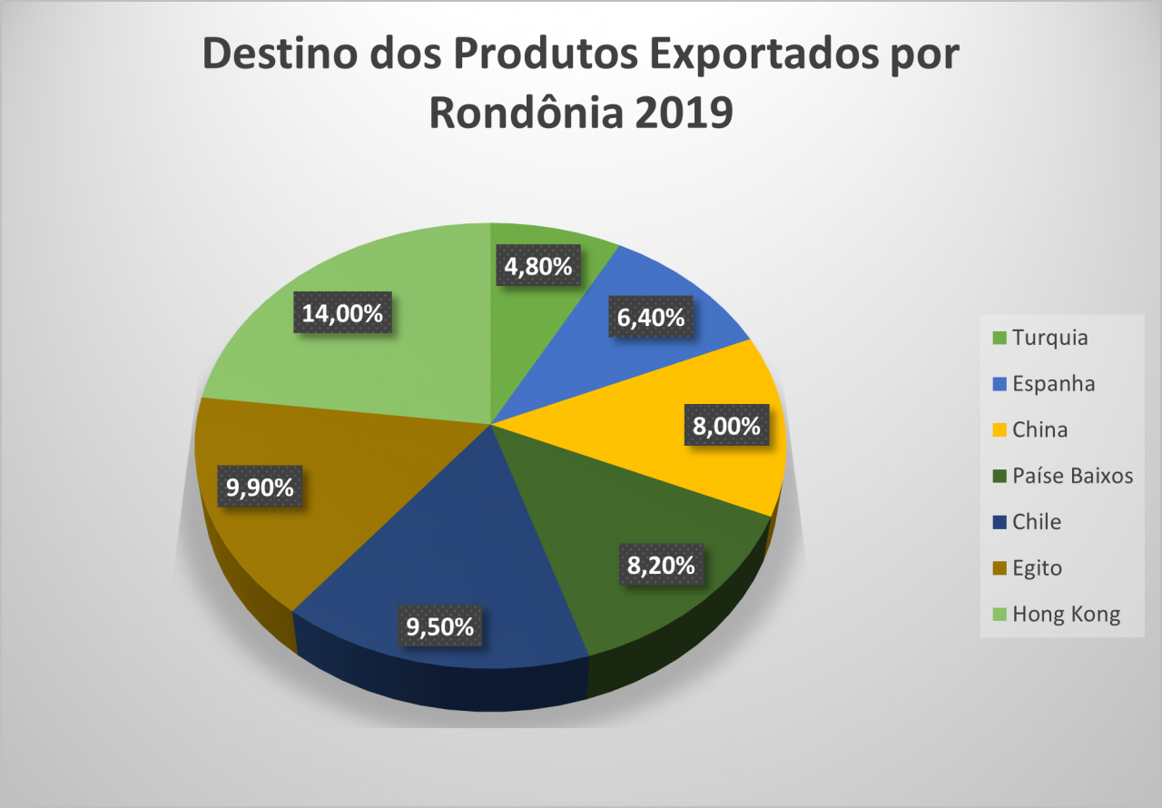 De acordo com o economista da Seagri, Alex Rilie, a balança comercial de Rondônia, fechou com um superávit de US$ 330,5 milhões, em 2019, indicando que houve mais exportações do que importações. Hong Kong, Egito, Chile, Países Baixos (Holanda), China, Espanha e Turquia são os principais parceiros comerciais de Rondônia.