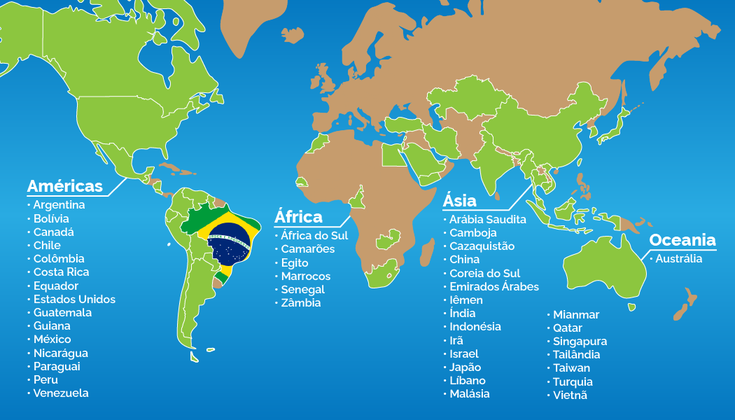 Do total dos 150 novos mercados, 74 são nas Américas, 57 na Ásia, 18 na África e um na Oceania.