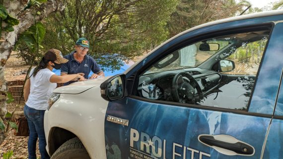 Extensionista rural da Emater prestando assistência a produtores rurais