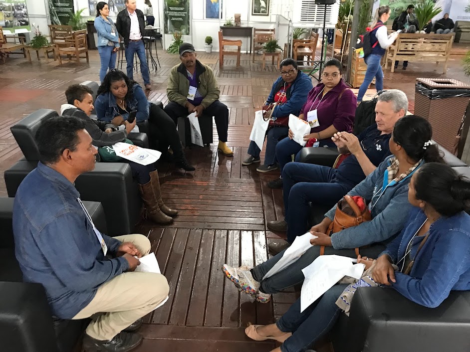 Em uma roda de conversa com a Comunidade Quilombola de Maracaju (MS), que fornece produtos para merenda escolar, Marco Rangel falou sobre o lançamento de uma variedade de mandioca e sobre as diferentes possibilidades de preparo para o produto ser mais atrativo para as crianças e também comercializado, como o chips de mandioca e a produção artesanal de cerveja de mandioca, testada e aprovada por mestre-cervejeiros catarinenses.