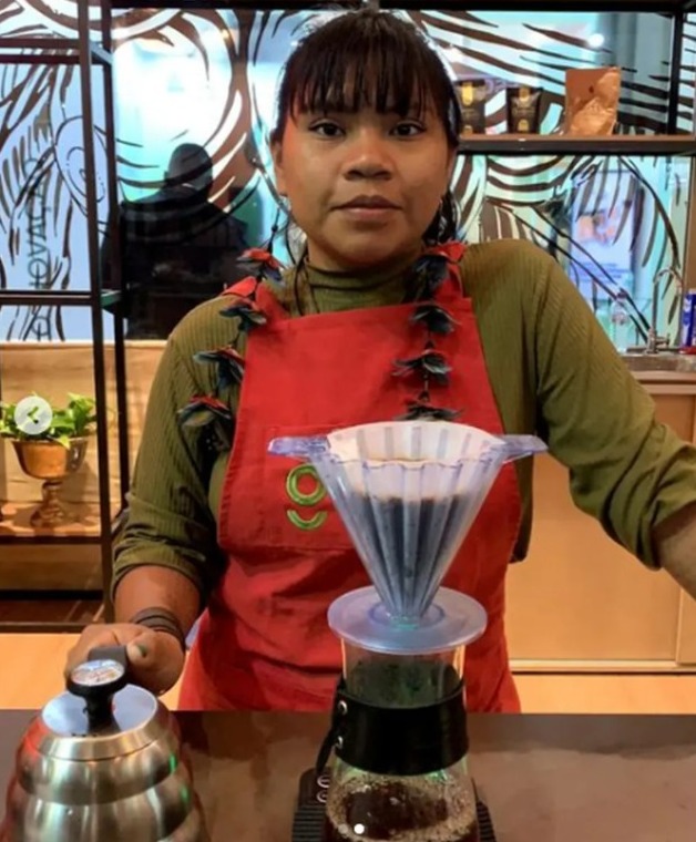 Celesty Suruí, primeira indígena barista do país, ficou em terceiro lugar no concurso "Florada Premiada 2023" - Foto: Reprodução/Redes Sociais/Celeste Suruí