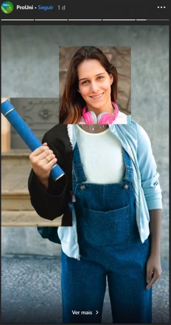 Na peça utilizada nos stories do Instagram, o rosto da modelo negra é sobreposto por outra foto, de uma mulher branca. A imagem polêmica está em todas as redes sociais do MEC desde a última quinta-feira (13/06/2019) e vem sendo duramente criticada por internautas.