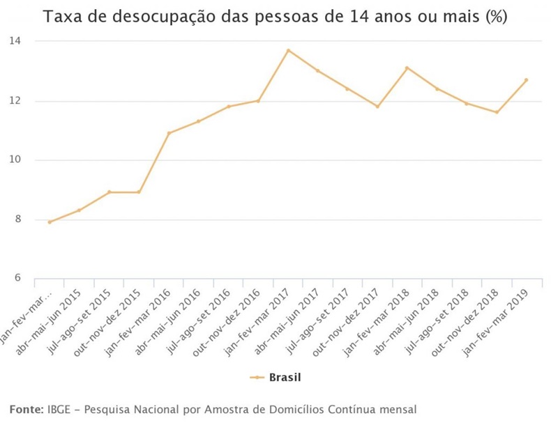 A situação do desemprego é um assunto delicado no país. Após três altas seguidas, no trimestre encerrado em abril desse ano, 13,2 milhões de pessoas estavam sem emprego, segundo o Instituto Brasileiro de Geografia e Estatística (IBGE). A taxa de desemprego ficou em 12,5%, pouco abaixo que no mesmo trimestre do último ano (12,9%).