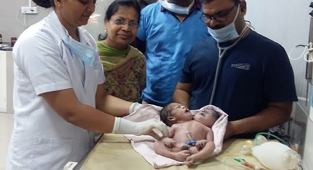 Segundo os médicos, são muito remotas as possibilidades de cirurgia de separação já que os gêmeos compartilham todos os seus órgãos. Surendra Sonkar, do hospital Vidisha Sadar, onde nasceram os gêmeos revelou a uma agência local: "O bebê tinha duas cabeças e três mãos. A terceira mão tinha duas palmas presas. Há apenas um coração visível no recém-nascido. Esta é uma condição muito rara e é a primeira vez que me deparei com esse caso na minha carreira".