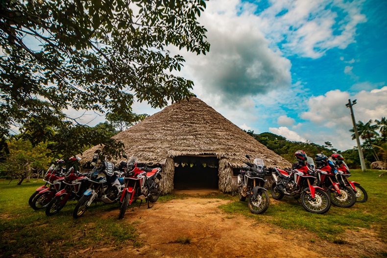 A caminho, montados numa CRF 1000L Africa Twin, os motoqueiros aventureiros tiveram a chance de passar por estradas de asfalto, mas também lugares remotos onde a lama e a poeira tornaram a viagem ainda mais divertida.