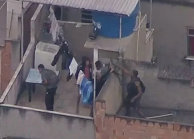 Às 7h30, criminosos com fuzis foram vistos pulando de laje em laje, em fuga. Os homens passavam as armas de mão em mão pelos muros enquanto corriam pelos telhados das casas. Não havia movimentação de moradores nas ruas e vielas do Jacarezinho.