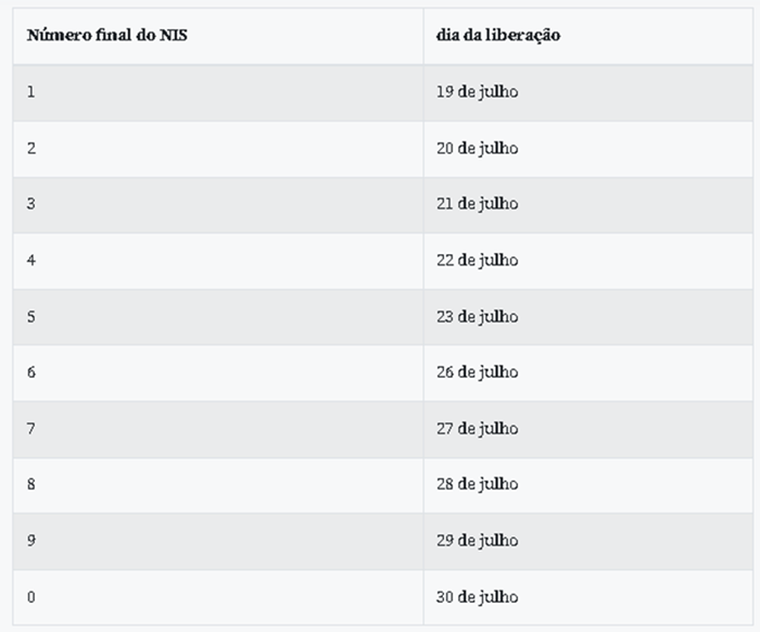 O recebimento dos recursos segue o calendário regular do programa social, pago nos últimos dez dias úteis de cada mês. Os pagamentos são feitos a cada dia, conforme o dígito final do NIS.