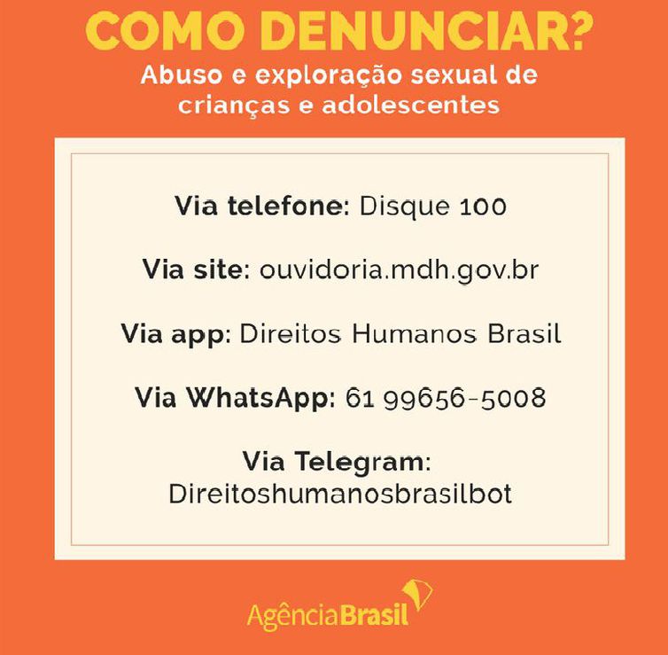 O Ministério da Mulher, da Família e dos Direitos Humanos (MMFDH) tem diversos canais para que qualquer tipo de violência contra crianças e adolescentes possa ser denunciada.