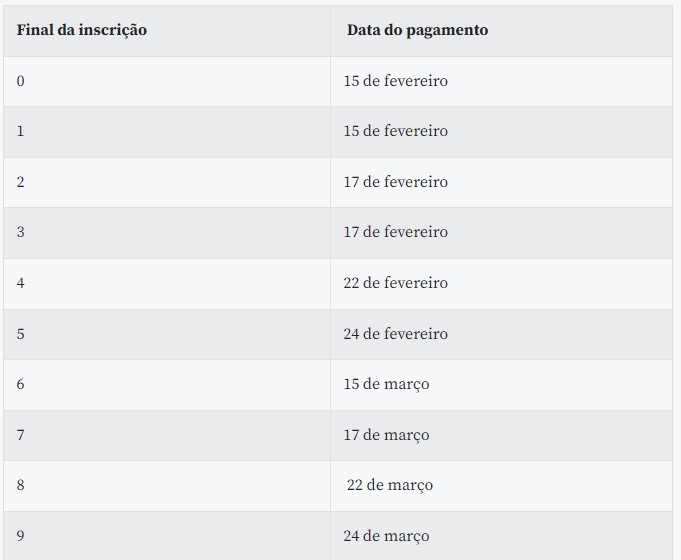 Para os beneficiários residentes nos municípios da Bahia, de Minas Gerais e do Rio de Janeiro em situação de emergência, devido às fortes chuvas, o pagamento foi liberado em 8 de fevereiro, independentemente do mês de nascimento.