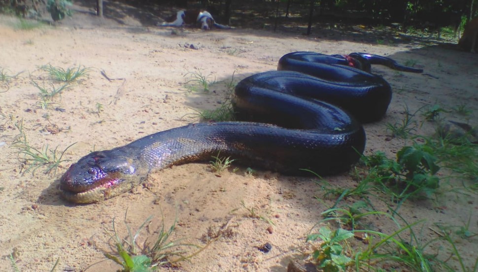 Ainda de acordo com testemunhas, na tentativa de salvar o cachorro eles a população acabou desferindo diversos golpes de facão contra a cobra, que não resistiu. A serpente mede aproximadamente oito metros e meio de cumprimento.