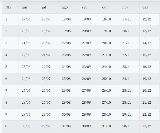 Veja o calendário: