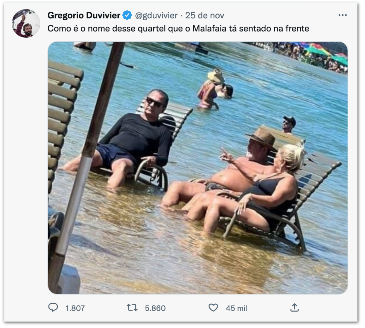 “Como é o nome desse quartel que o Malafaia tá sentado na frente”, escreveu o comediante Gregório Duviver.