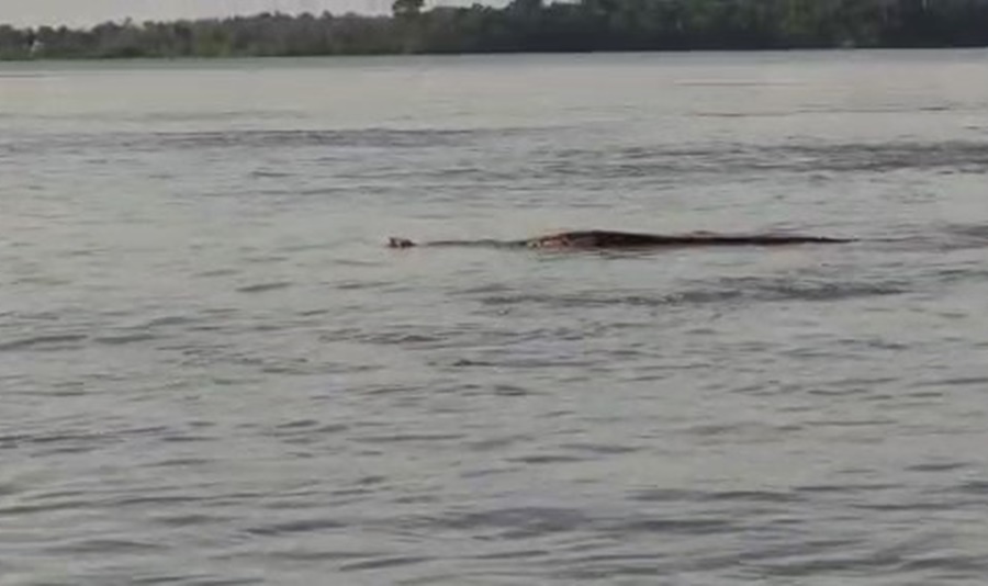 De acordo com informações de quem viu o animal, o “monstro” passou pela água de forma calma e sem ser incomodada.