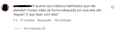 Porém uma postagem gerou revolta em parte dos internautas, nela uma mulher negra aparece ao lado da frase: “Você confiaria a vida da sua mãe a um médico não habilitado?”.