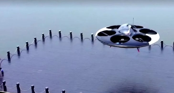 Desenvolvido pela Shenzhen UFO Power Technology, o disco voador é equipado com 12 pás de hélice ao redor do assento do piloto, bem no meio da nave.