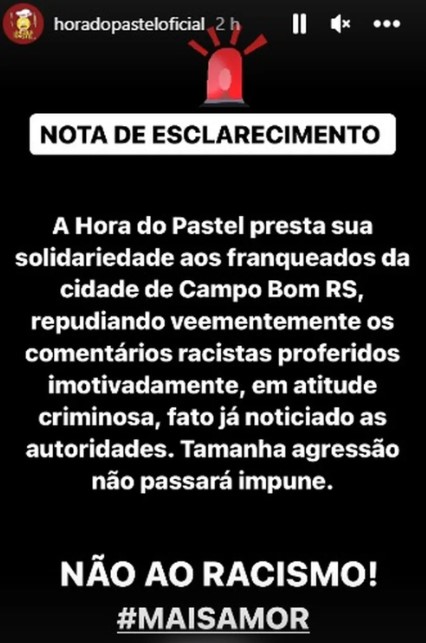 Uma pastelaria em Campo Bom, no Rio Grande do Sul, denunciou um incidente de racismo ocorrido durante um pedido feito por uma cliente na noite nesta semana.